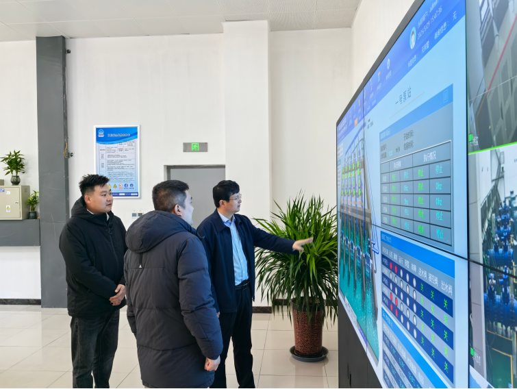 在一號泵站調(diào)度中心,通過數(shù)字孿生平臺的實(shí)時(shí)演示,全面了解項(xiàng)目智能化管理系統(tǒng)的運(yùn)行模式和數(shù)據(jù)應(yīng)用效果。魏長學(xué)肯定了平臺在優(yōu)化調(diào)度、應(yīng)急響應(yīng)等方面的功能,并要求進(jìn)一步強(qiáng)化技術(shù)賦能,提升水務(wù)管理的精細(xì)化水平。隨后,在二號泵站現(xiàn)場查看主道路施工進(jìn)展,詳細(xì)詢問道路施工的工期節(jié)點(diǎn)與難點(diǎn)及施工進(jìn)度情況,要求工作人員加強(qiáng)監(jiān)督與管理,在確保安全和質(zhì)量的前提下,加快推進(jìn)配套工程建設(shè)。最后來到三號泵站,查看了水泵機(jī)組及配套設(shè)備維護(hù)情況,檢查了廠房土建防漏防潮措施,提出要加強(qiáng)巡查及日常點(diǎn)檢,確保泵站各項(xiàng)工作安全進(jìn)行。